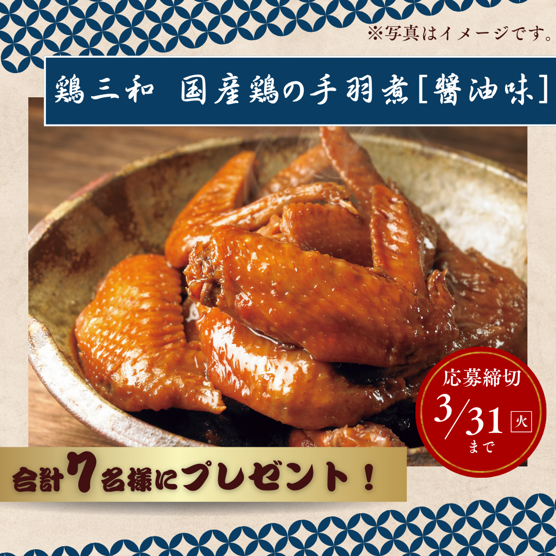 「鶏三和 国産鶏の手羽煮 醤油味」が抽選で7名様に当たります!